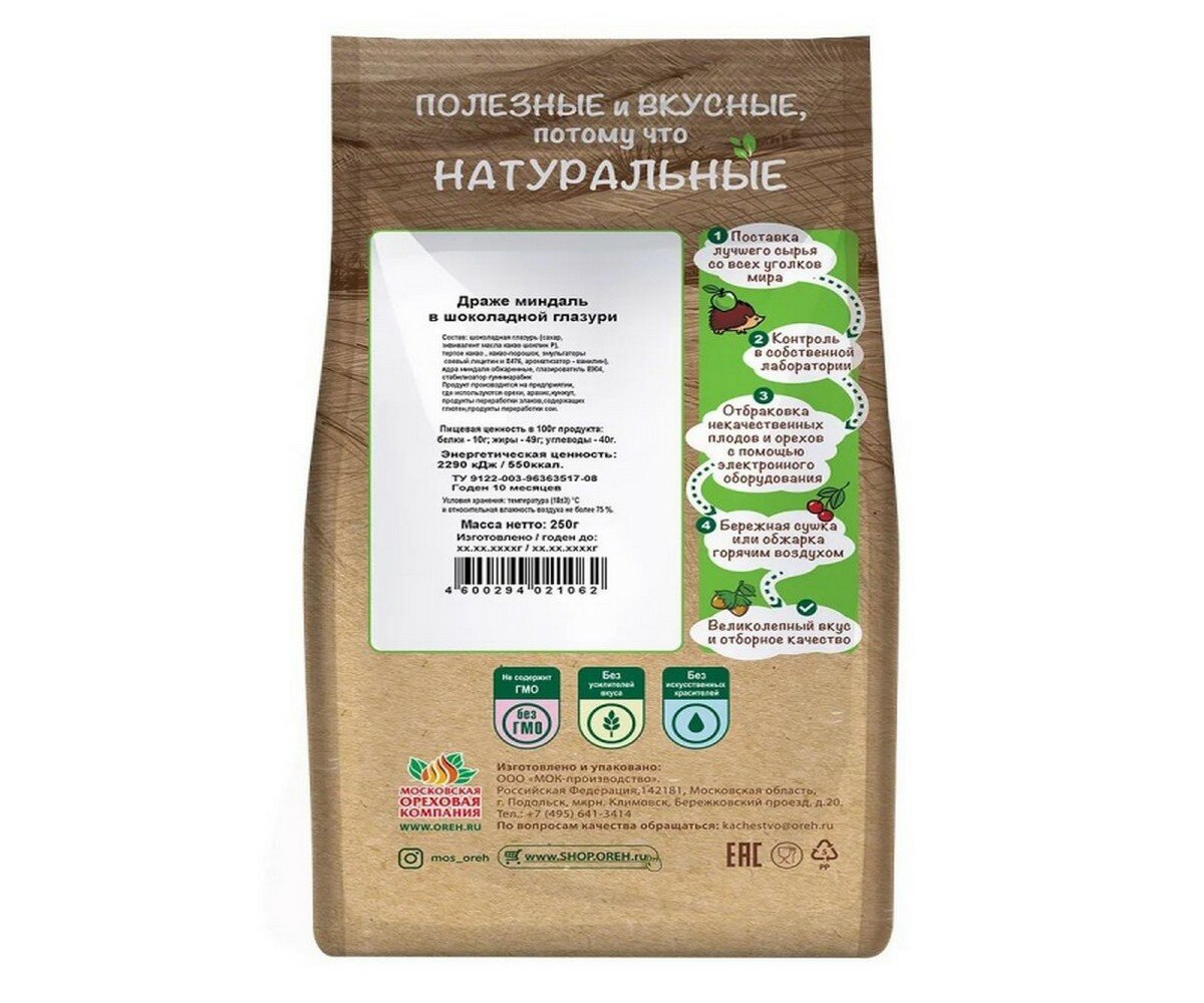 Миндаль в шоколадной глазури ДражеДары природы 250 гр, 2707 интересное: