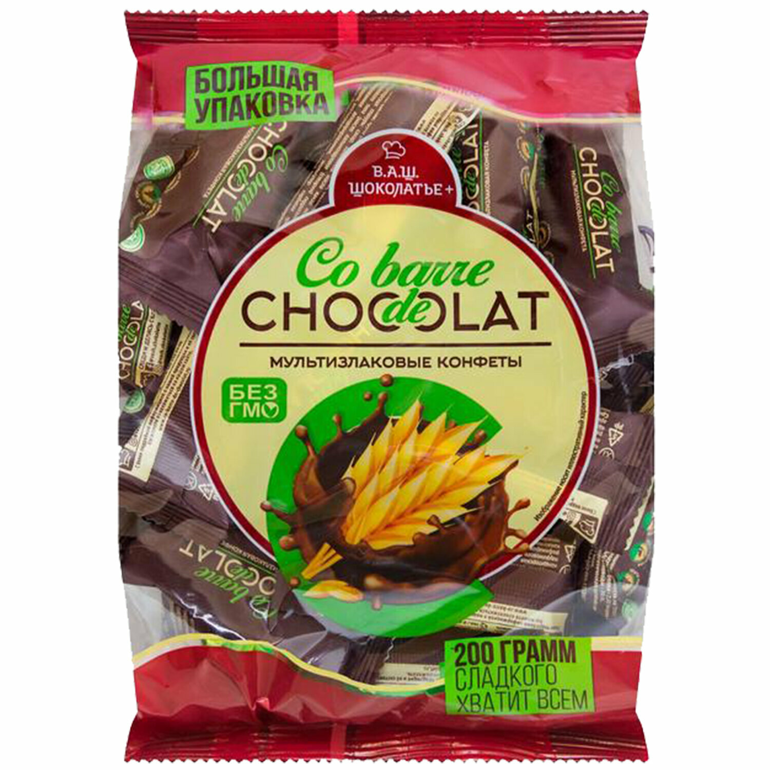 Купить Конфеты В.А.Ш. ШОКОЛАТЬЕ+ Co barre de Chocolat (Cobarde El Chocolate) мультизлаковые с темной глазурью, 200 г, флоу-пак