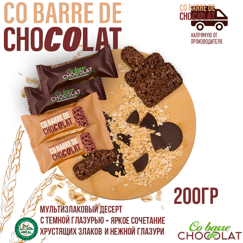 Конфеты мультизлаковые Co barre de CHOCOLAT с тёмной кондитерской глазурью 1000гр / Вкус, знакомый с детства.
