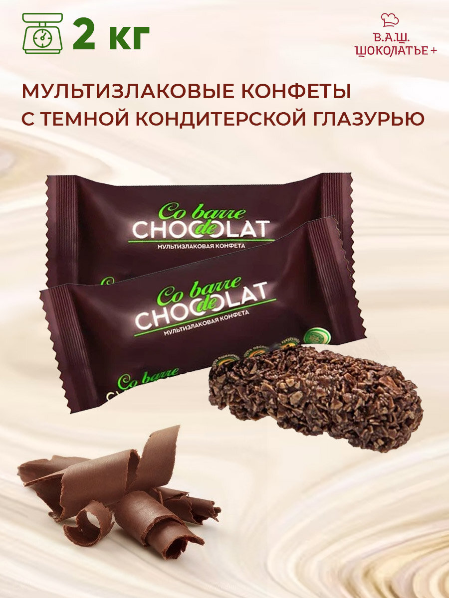 Конфеты мультизлаковые Co barre de CHOCOLAT с тёмной кондитерской глазурью 1000гр / Вкус, знакомый с детства.