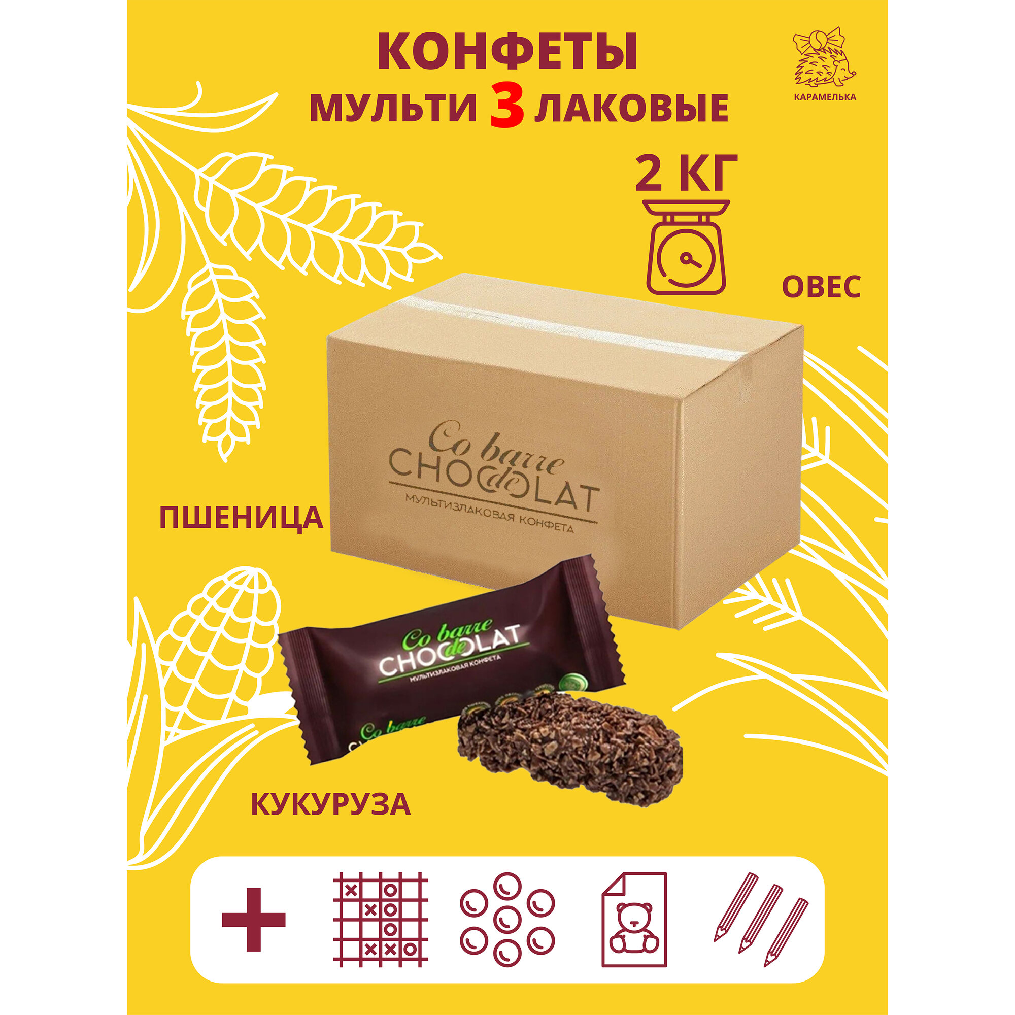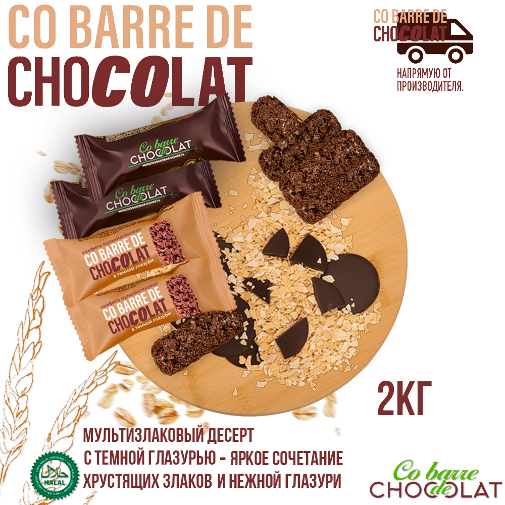 Конфета Мультизлаковая Co barre de CHOCOLAT с тёмной глазурью, гофрокороб 2кг