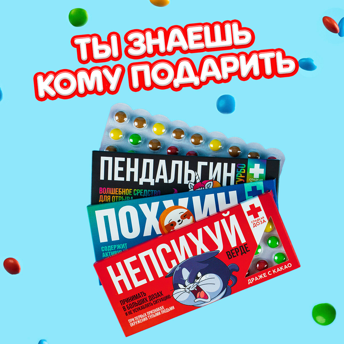 Купить Набор драже в прикольной подарочной упаковке с надписями "Пендальгин, Пофигин, Непсихуй" 3 шт по 20 г