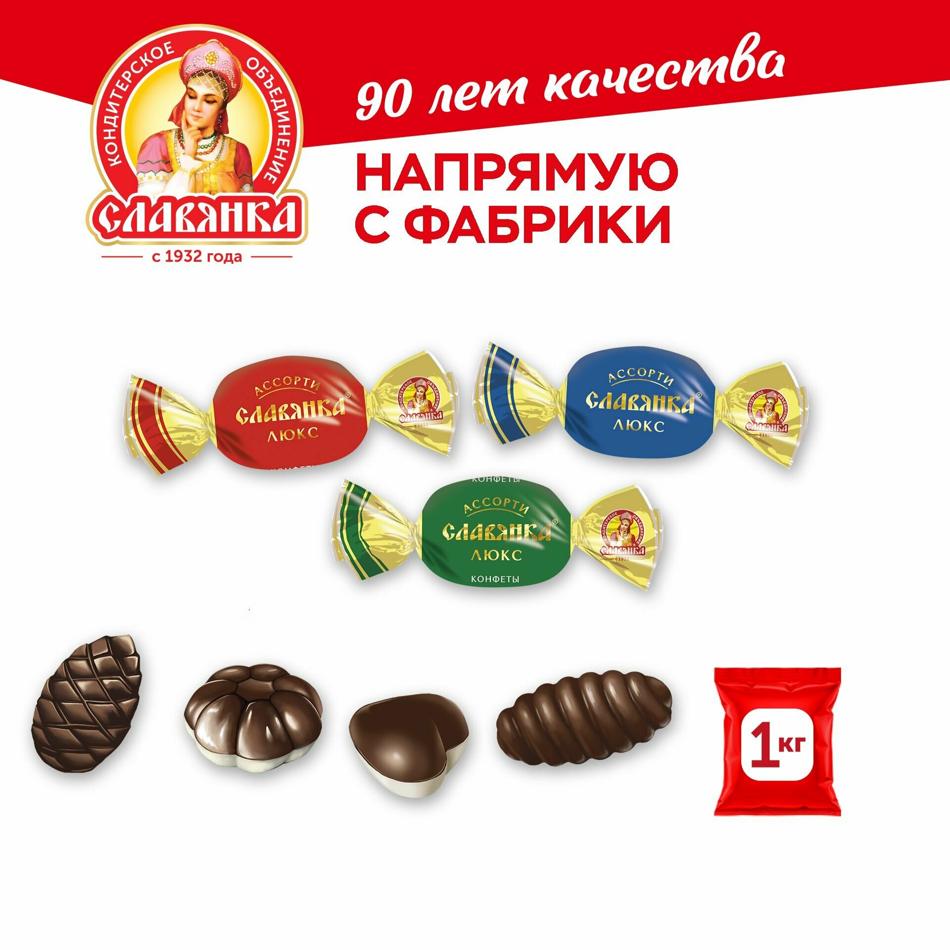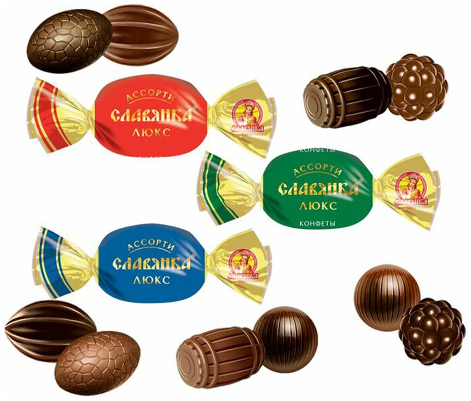 Конфеты "Ассорти Славянка" Люкс в тёмном, молочном и белом шоколаде, 1 кг
