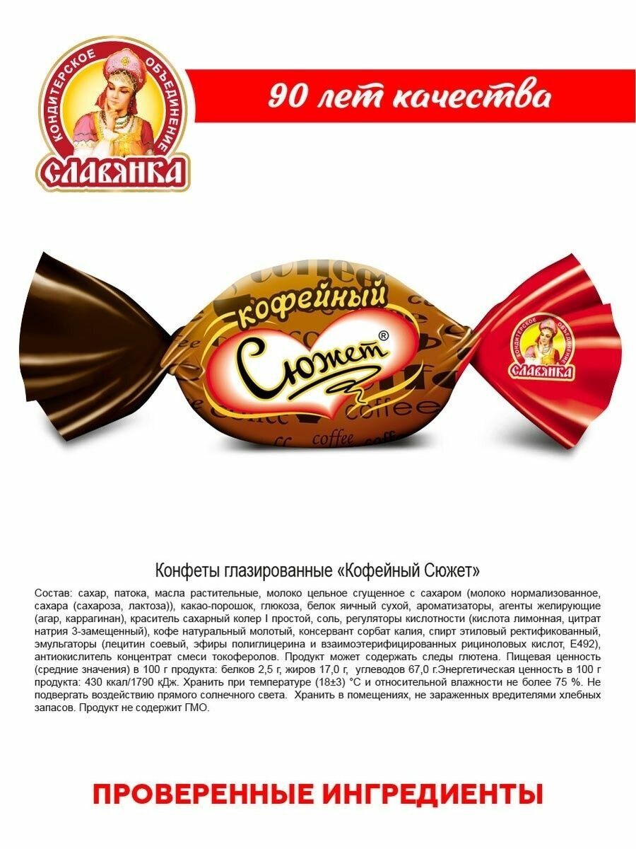 Ниже Вы можете прочитать отзывы на Конфеты глазированные Славянка Кофейный сюжет, вес 1 кг, ознакомится с подробными характеристиками, посмотреть интересные обзоры и фотографии на Конфеты глазированные Славянка Кофейный сюжет, вес 1 кг.