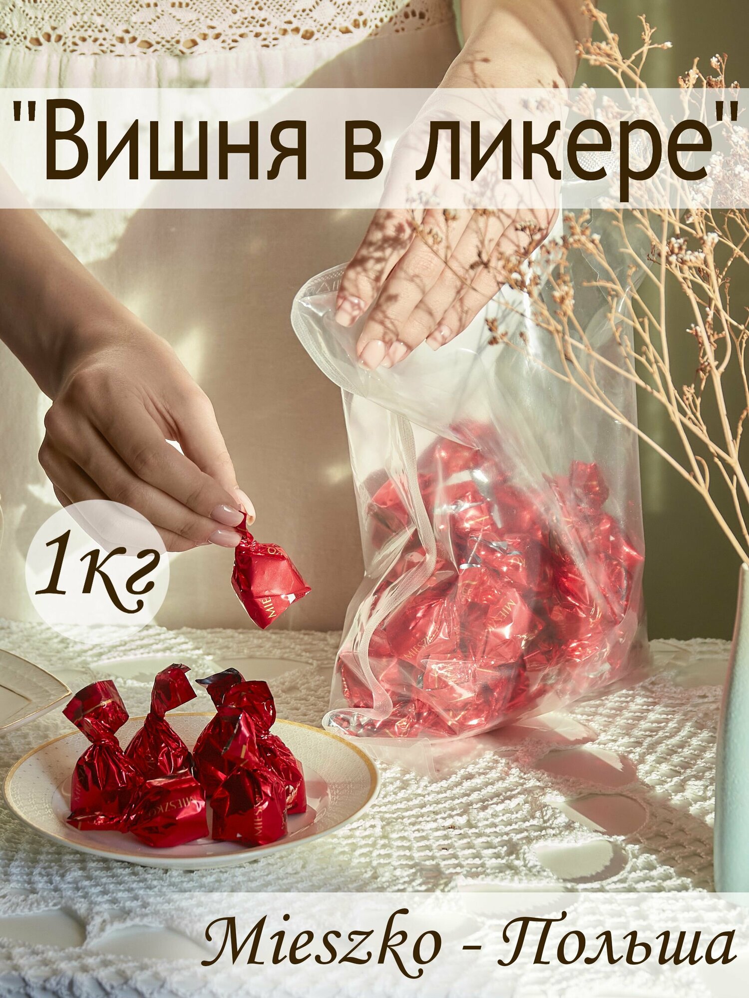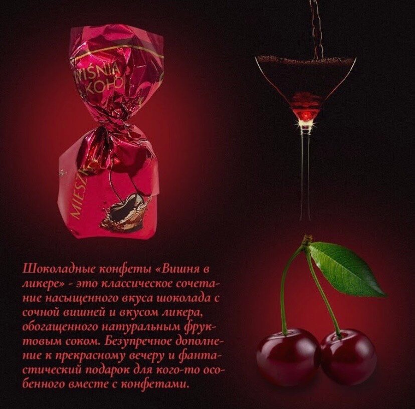 Конфеты шоколадные Вишня в ликере 1кг MIESZKO интересное: