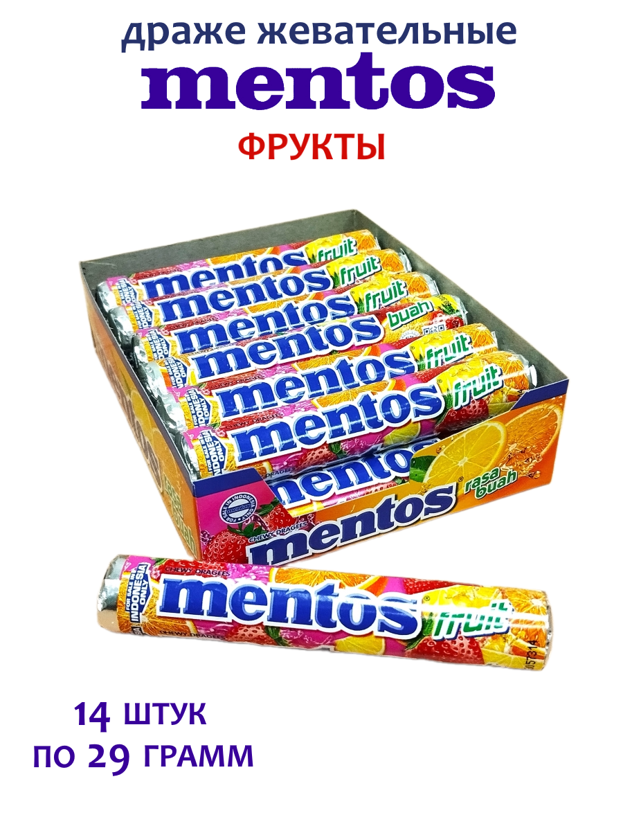 Жевательные конфеты Ментос с фруктовым вкусом, 14 штук интересное: