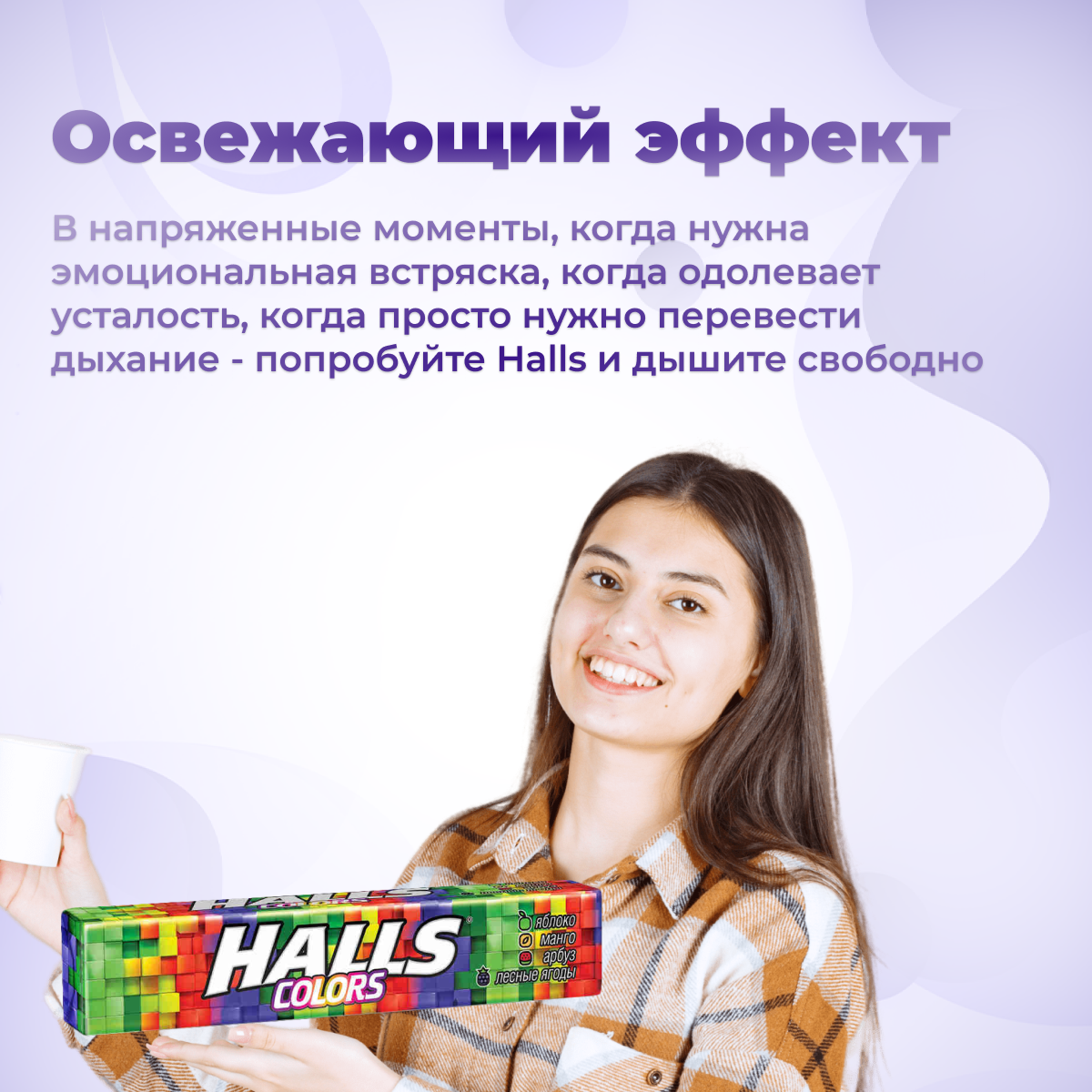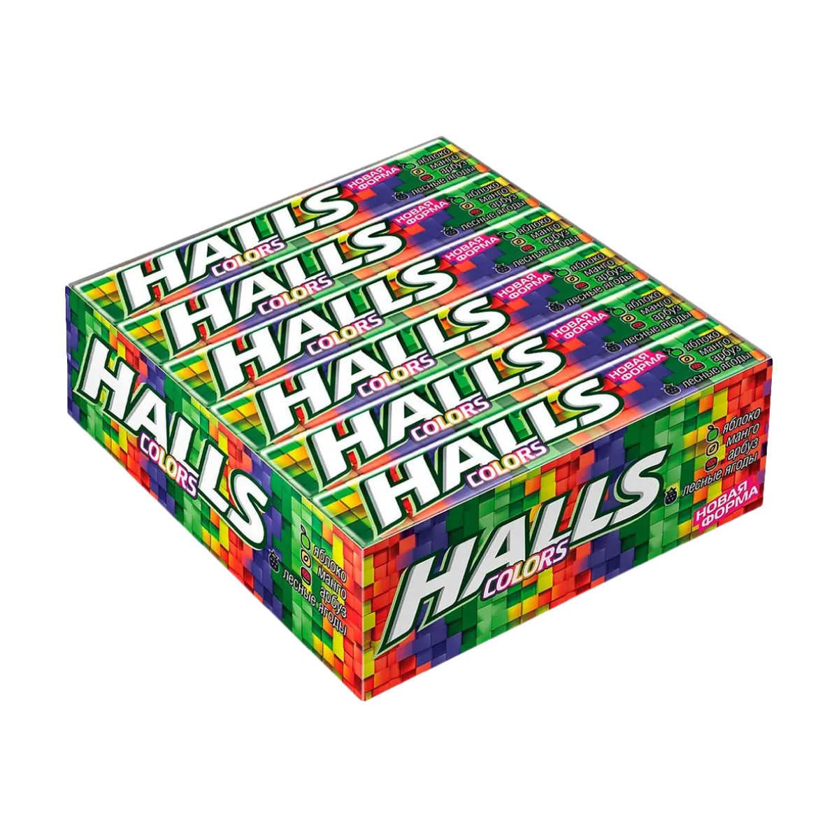 HALLS Карамель леденцовая, Colors, Ассорти, Шоубокс, 25г*12 шт интересное: