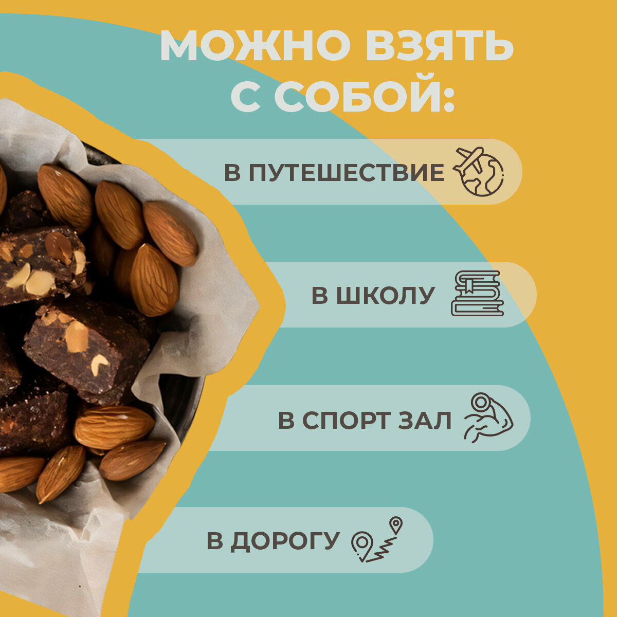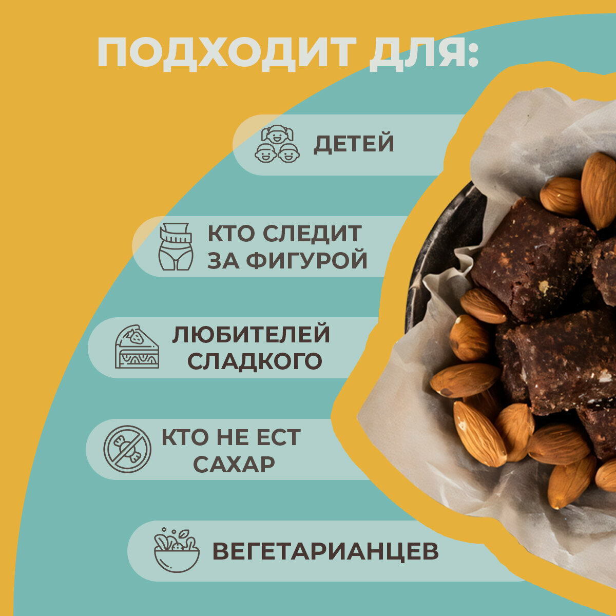 | Состав | кокосовая стружка; какао; миндаль; финиковая паста |