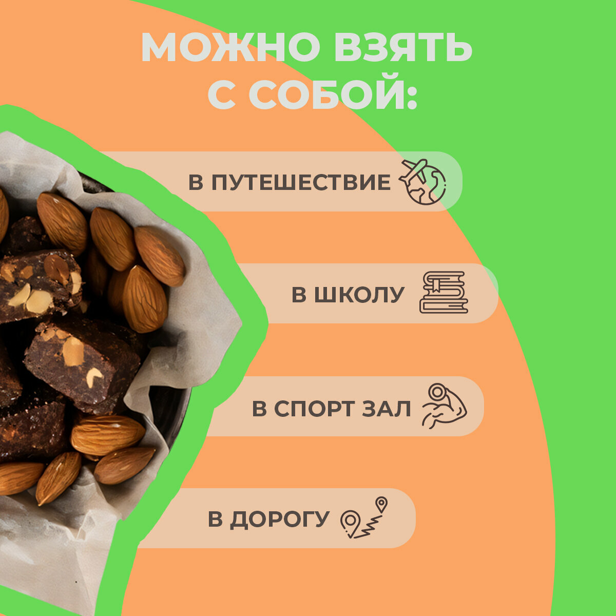 | Состав | кокосовая стружка; какао; миндаль; финиковая паста |