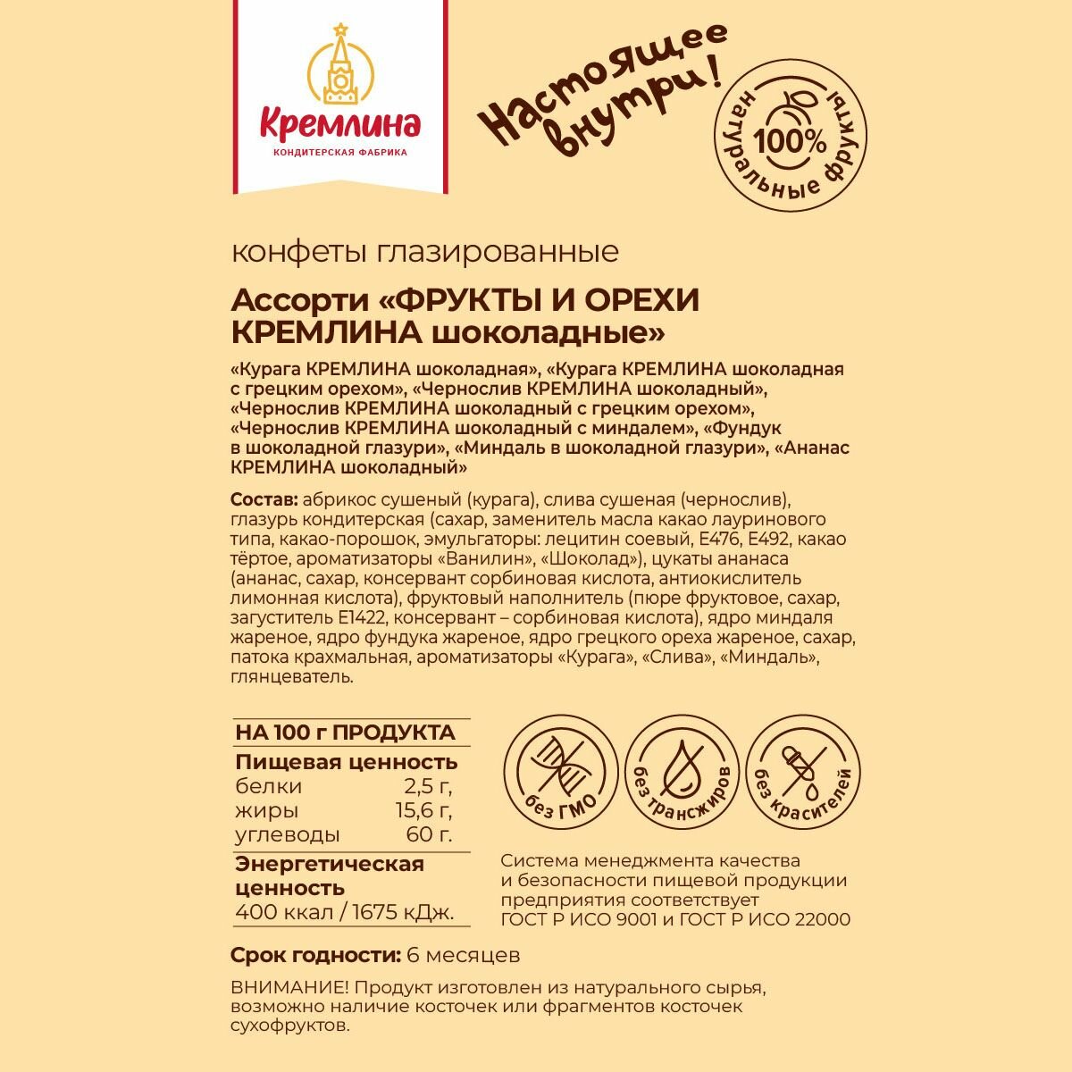 Конфеты шоколадные Кремлина Микс фрукты и орехи в шоколадной глазури, 1кг