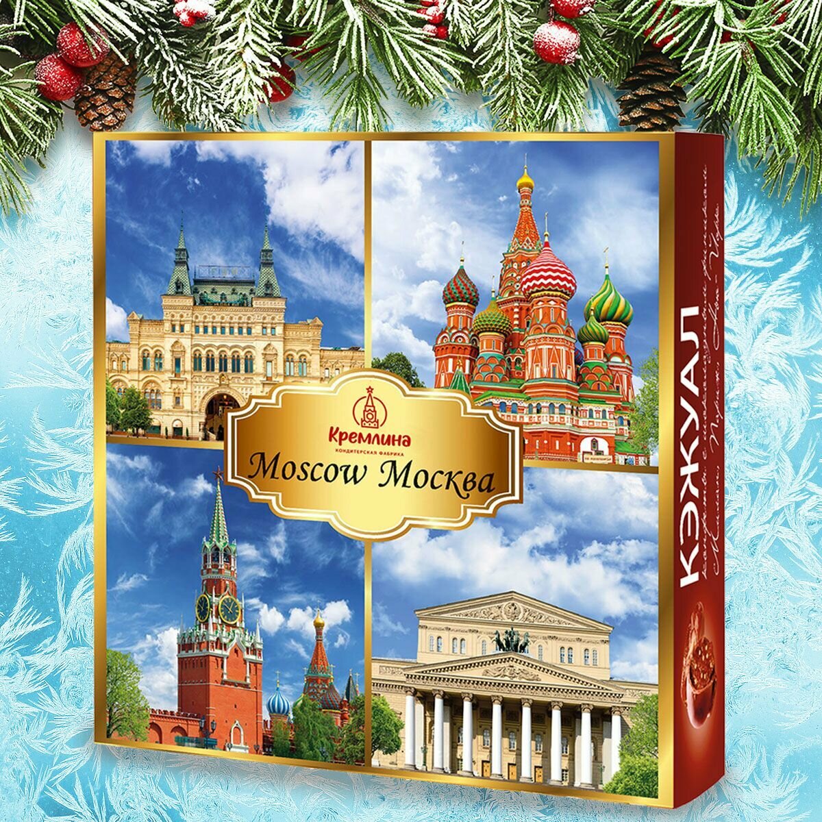 СохранитьНабор конфет подарочных Ассорти Кэжуал со вкусами кофе, тирамису и лесного ореха в подарочной коробке"Москва", 230 грамм интересное: