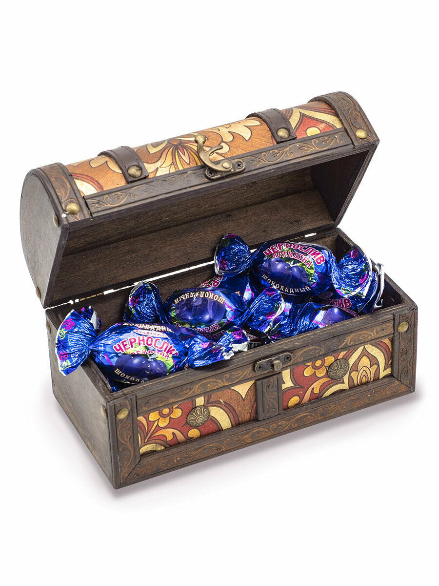 Подарок новогодний, набор конфет подарочных Чернослив шоколадный в сундуке , 600 грамм