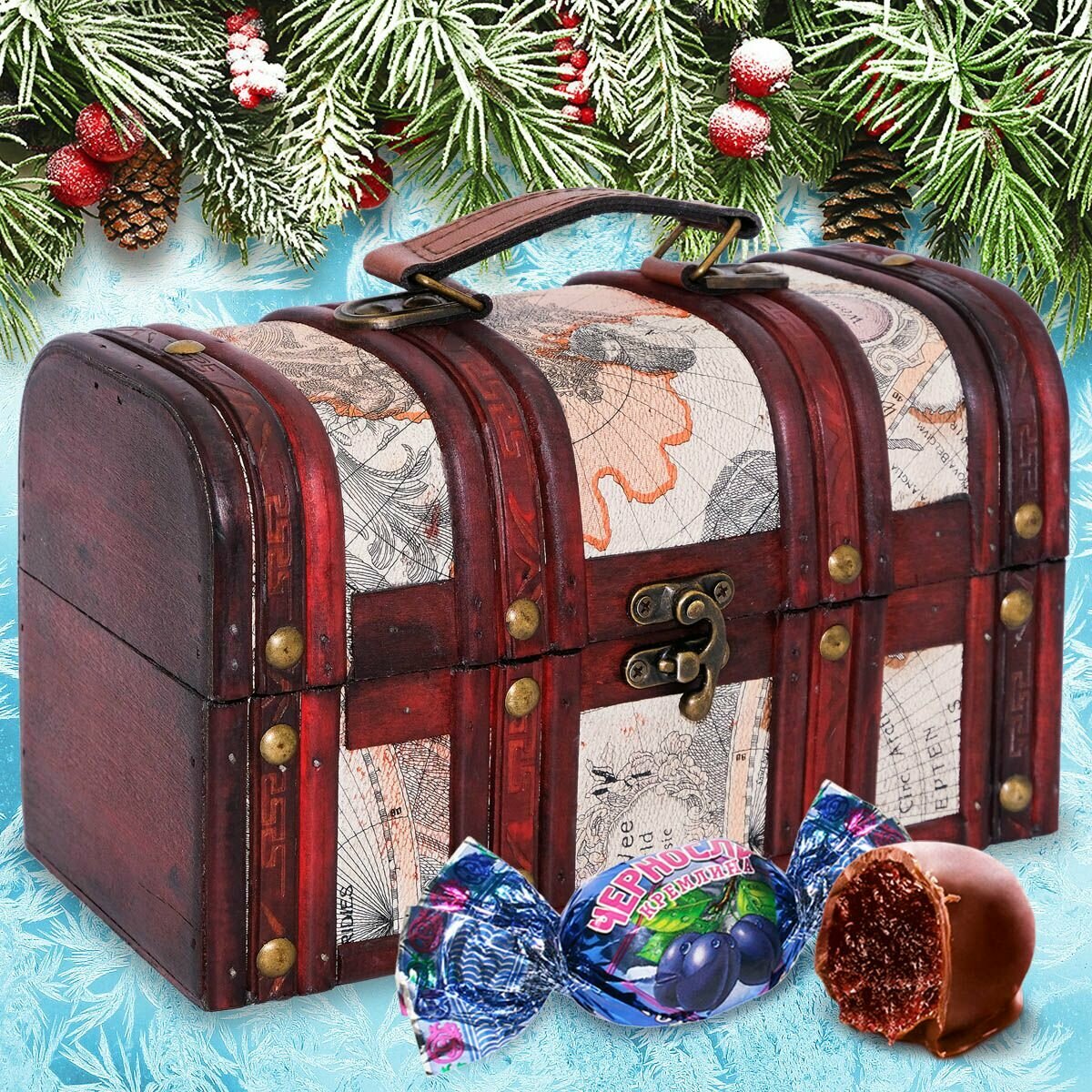 Подарок новогодний, набор конфет подарочных Чернослив шоколадный в сундуке сокровищ , 600 грамм