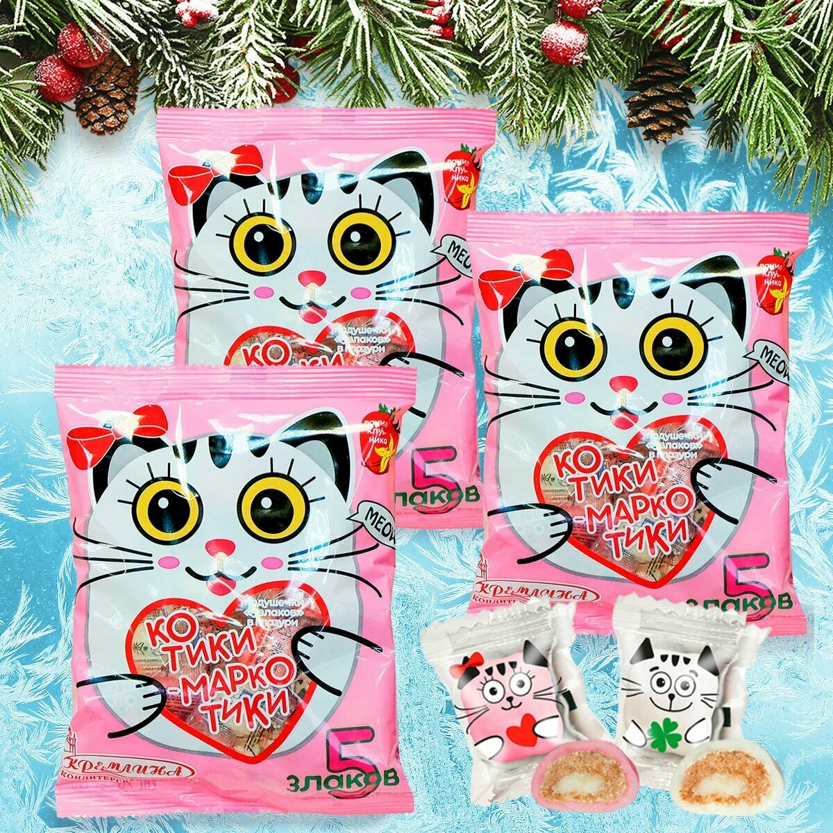 Купить Конфеты из злаков в глазури Котики-Маркотики Ассорти , спайка 3 шт. по 150 гр.