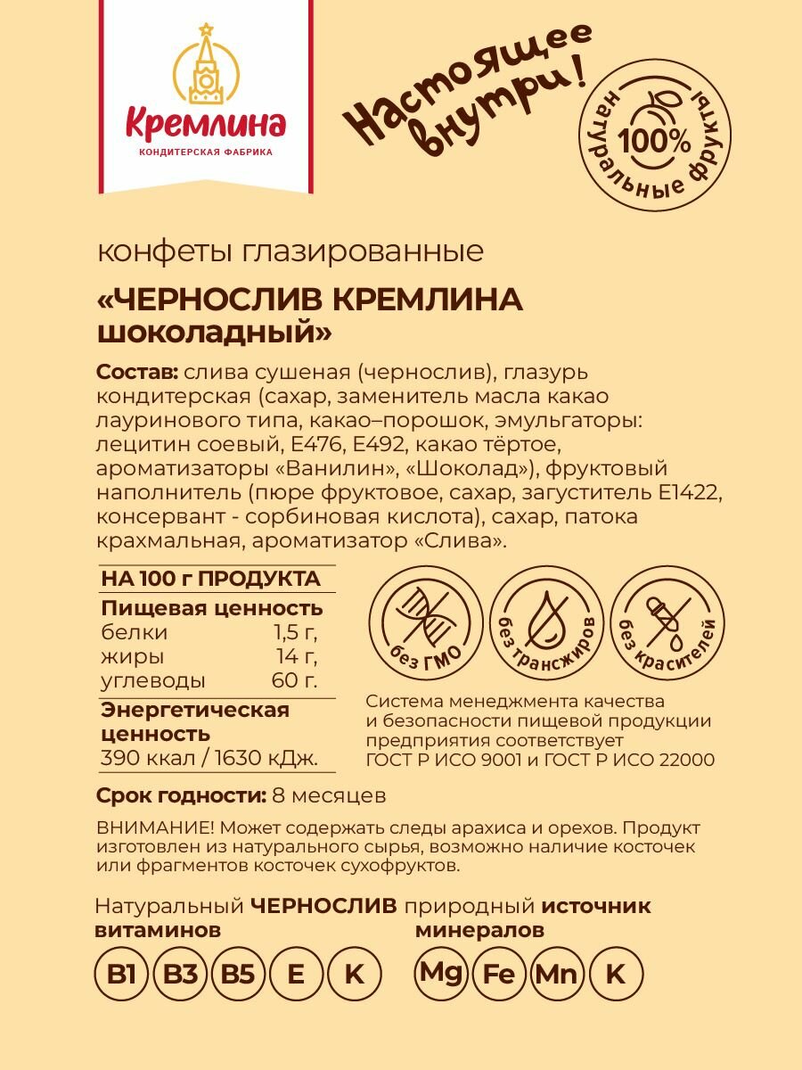 Конфеты Кремлина чернослив шок. с грец. орехом,Матрешка Хохлома, 250г