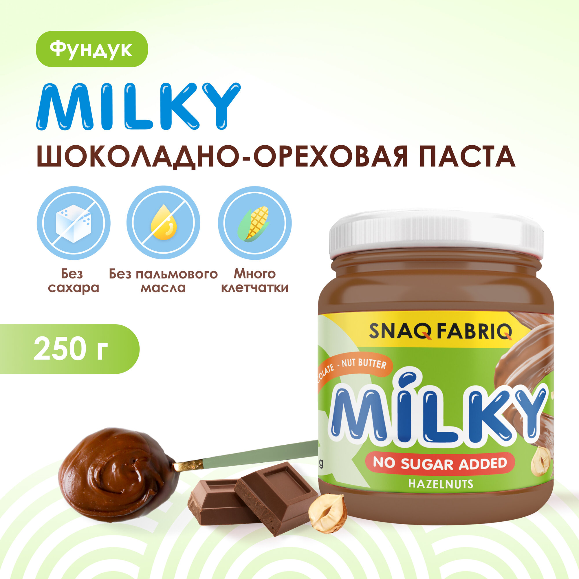 Snaq Fabriq шоколадно-ореховая паста MILKY без сахара с фундуком, 250г интересное: