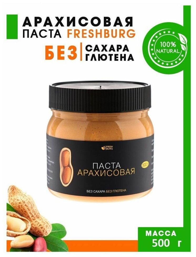 Паста арахисовая без сахара Freshburg (500 г) интересное: