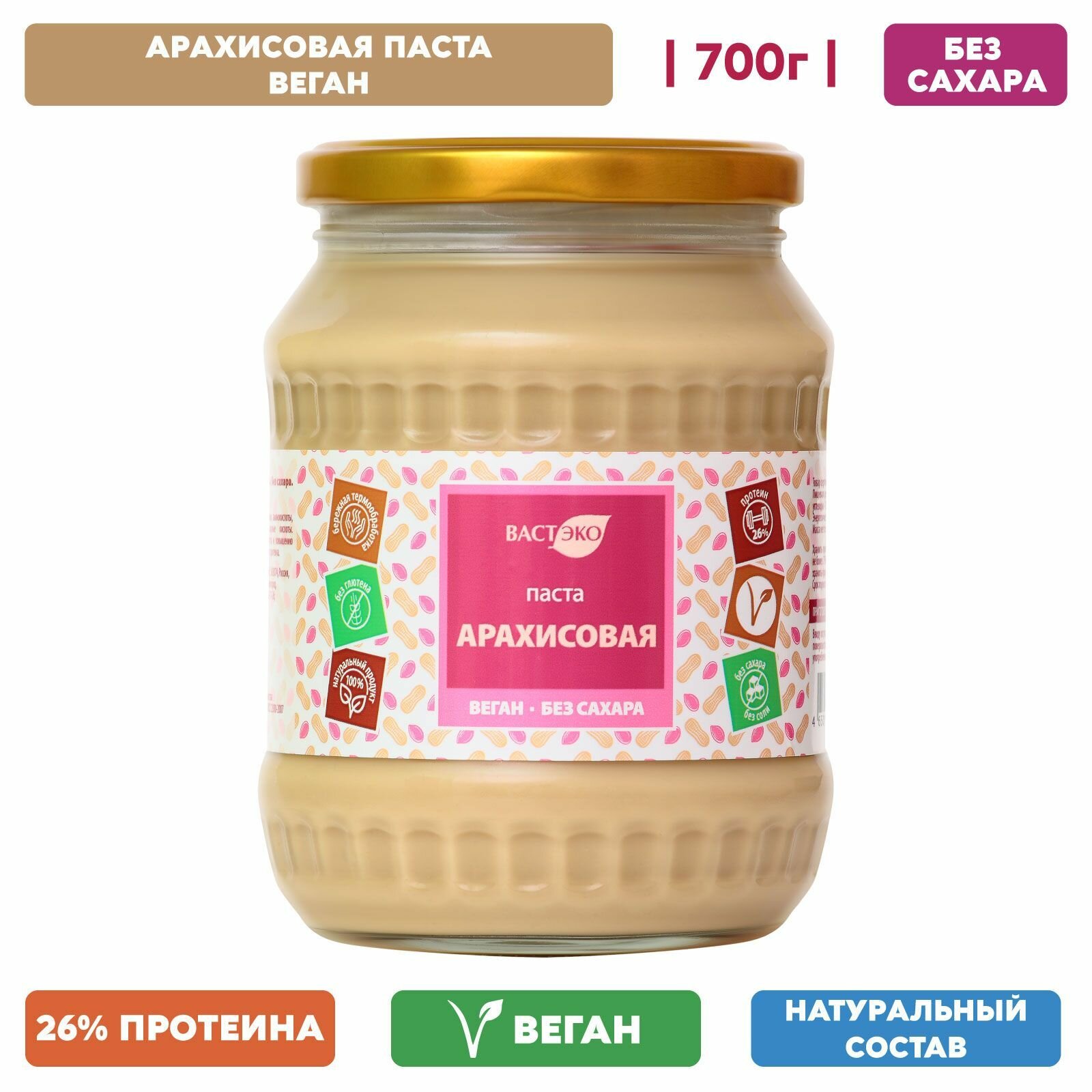 Купить Паста Арахисовая, Веган, без сахара, 700 г/ здоровое питание, без глютена, без лактозы