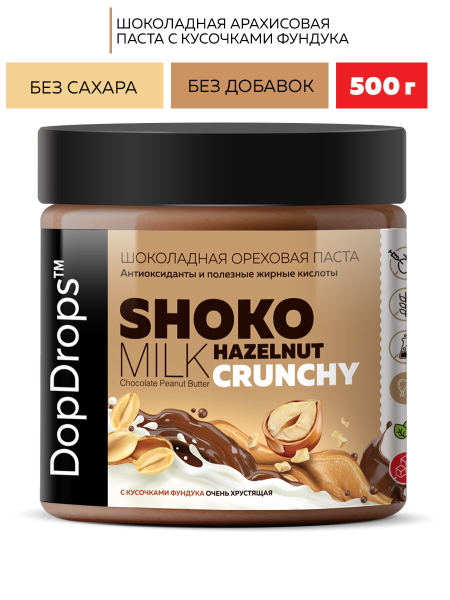 Купить Шоколадная паста DopDrops хрустящая с кусочками фундука, 500 г
