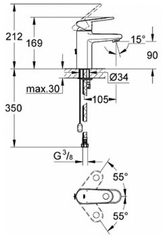 Смеситель для раковины GROHE Europlus с цепочкой, хром (32617002)