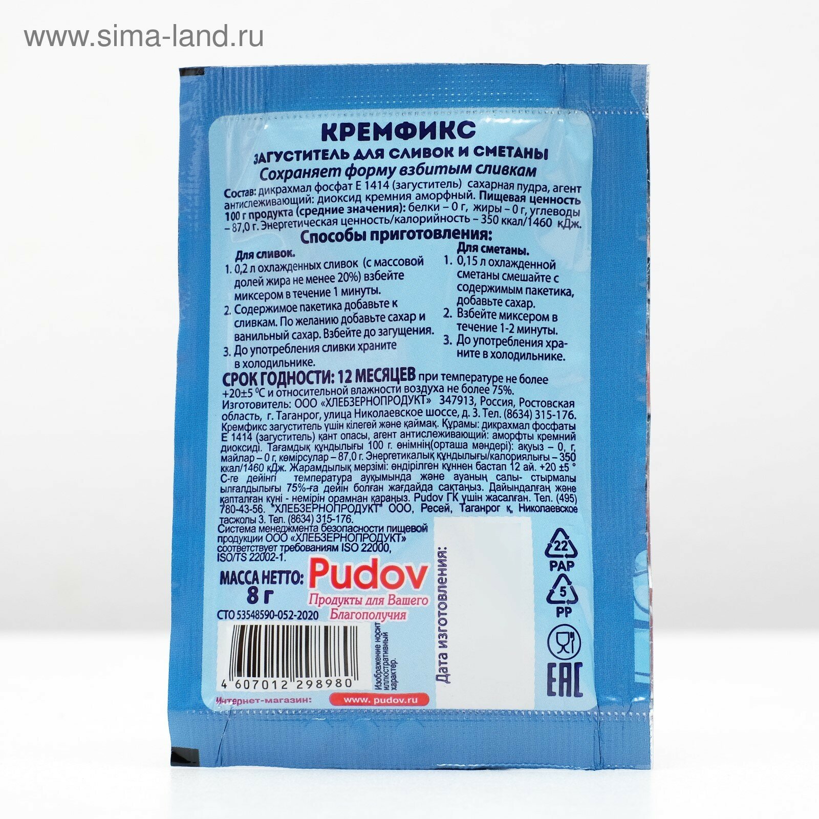 Кремфикс (загуститель) С. Пудовъ Для сливок и сметаны 8 г интересное: