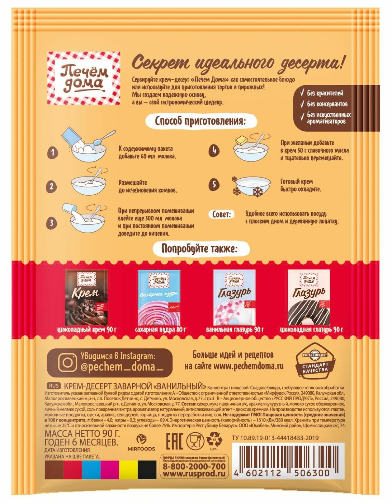 Крем-десерт Печем дома "Ванильный " 90г. / 15 шт. в коробке интересное: