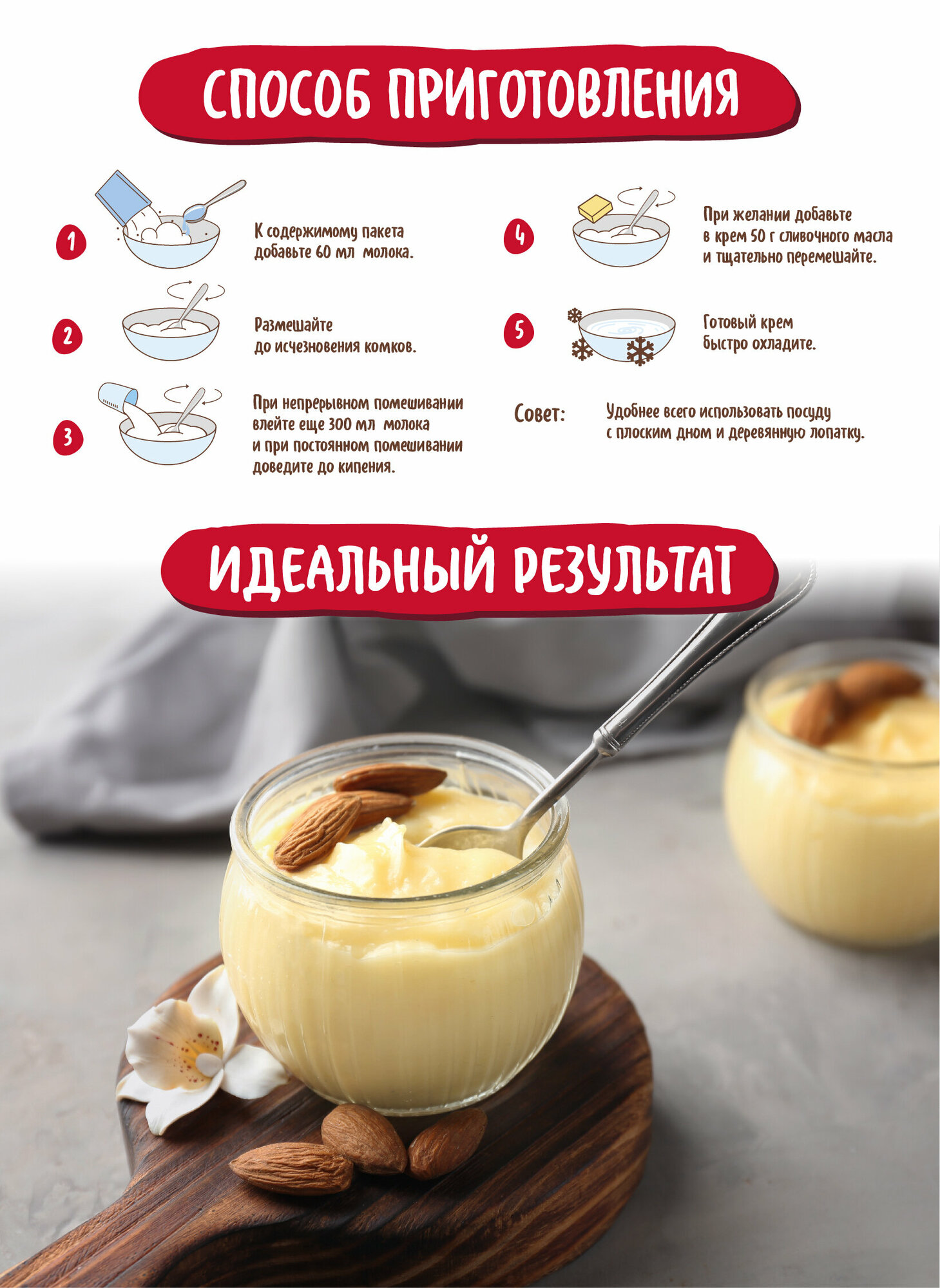 | Состав | Сахар, мука пшеничная в/с, крахмал кукурузный, молоко сухое обезжиренное, яичный меланж сухой, соль поваренная экстра, ароматизатор натуральный Сливки с Ванилью, ароматизатор натуральный Ваниль, экстракт ванили, антислеживающий агент - диоксид кремния. |