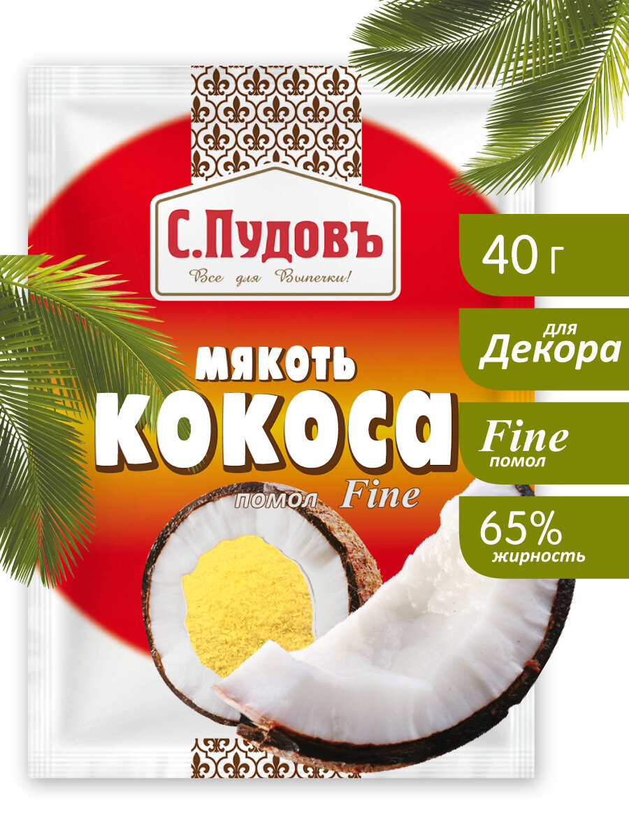 Купить Мякоть кокоса (кокосовая стружка) С. Пудовъ Желтая помол fine 40 г