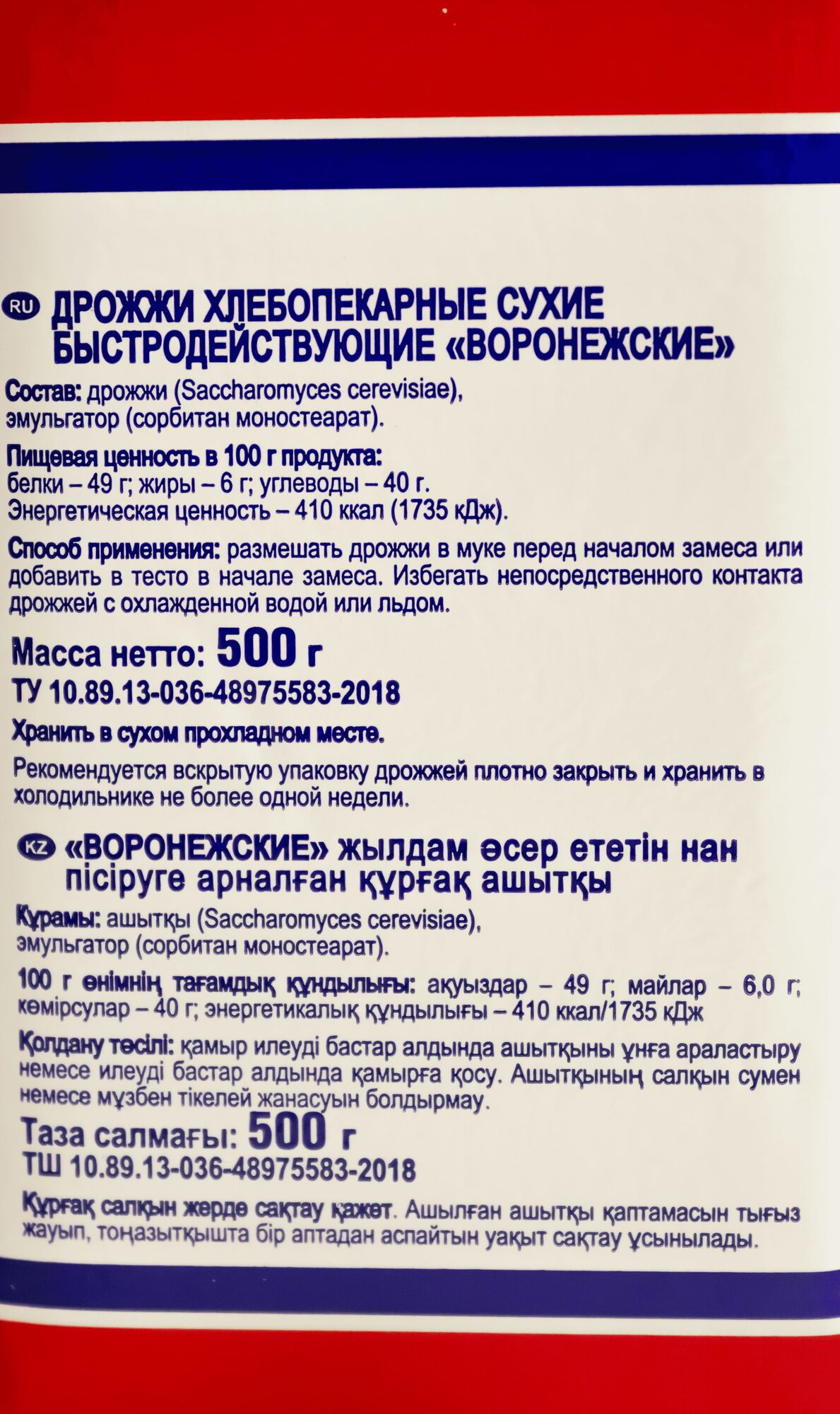 Дрожжи хлебопекарные "Воронежские" сухие быстродействующие, 3х500 гр интересное: