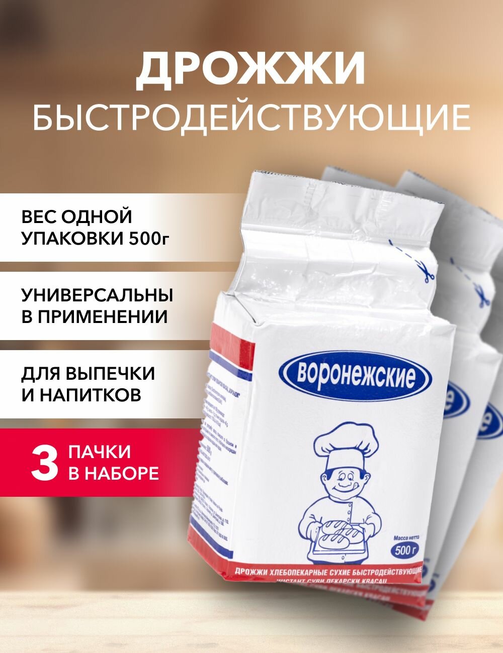 Дрожжи сухие быстродействующие Воронежские 500 г*3 шт