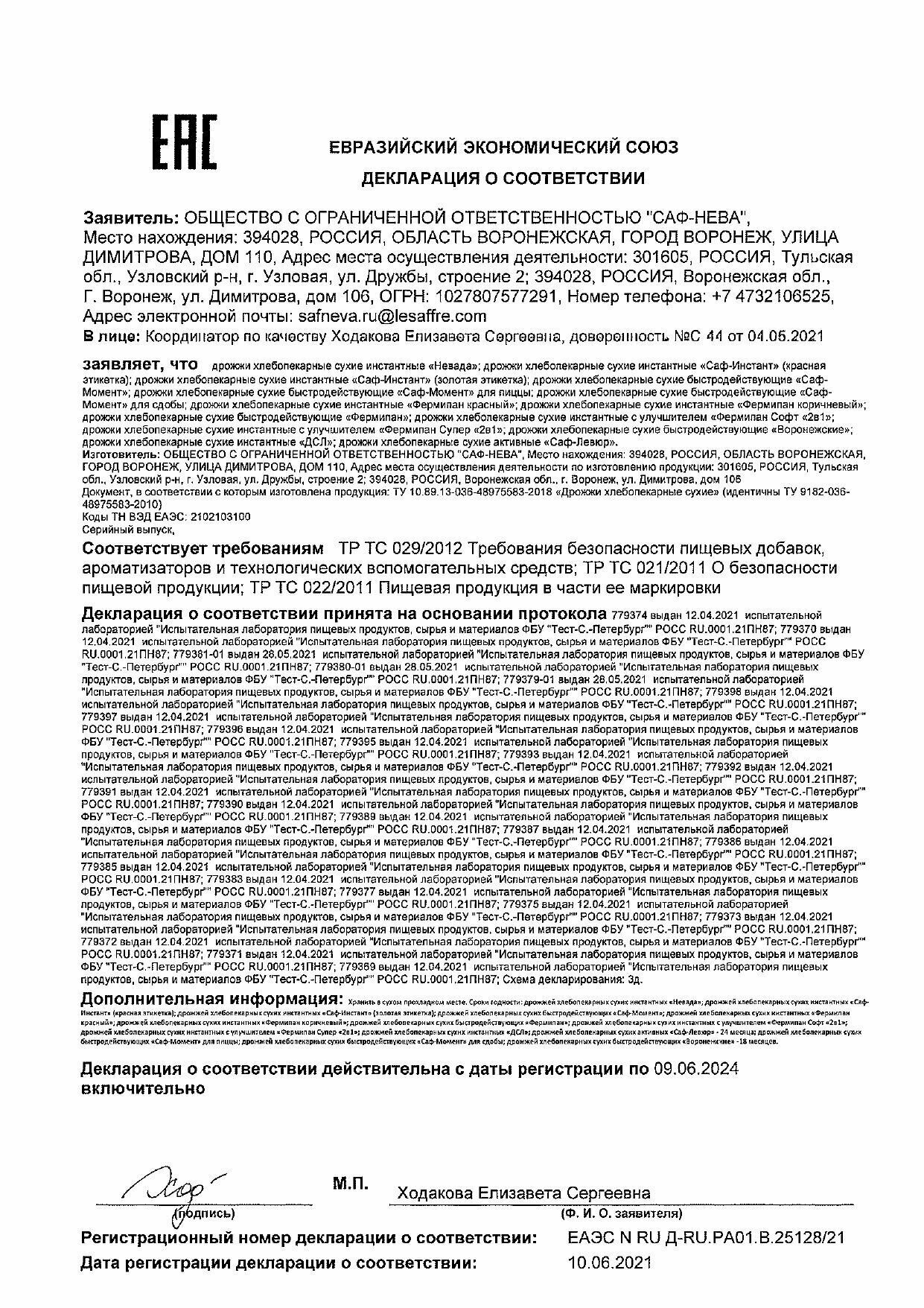 | Стандарты производства | ТУ 10.89.13-036-48975563-2018 |