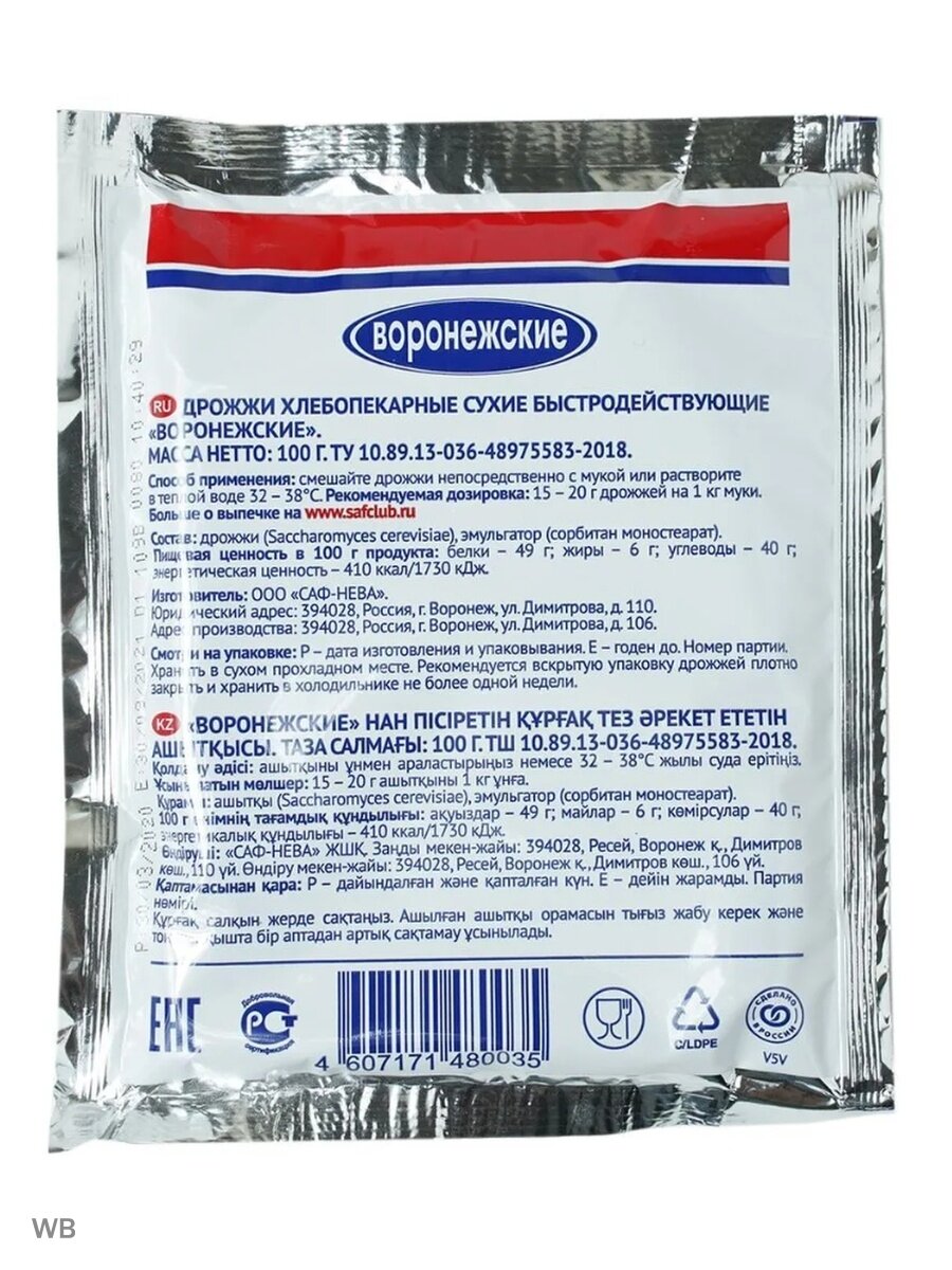 Дрожжи "Воронежские дрожжи" 100 г интересное: