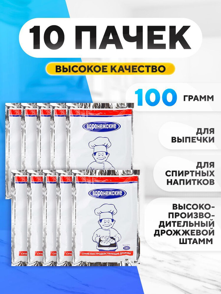 Купить Дрожжи хлебокепарные сухие активные "Воронежские" 100 г (10 пачек), для выпечки