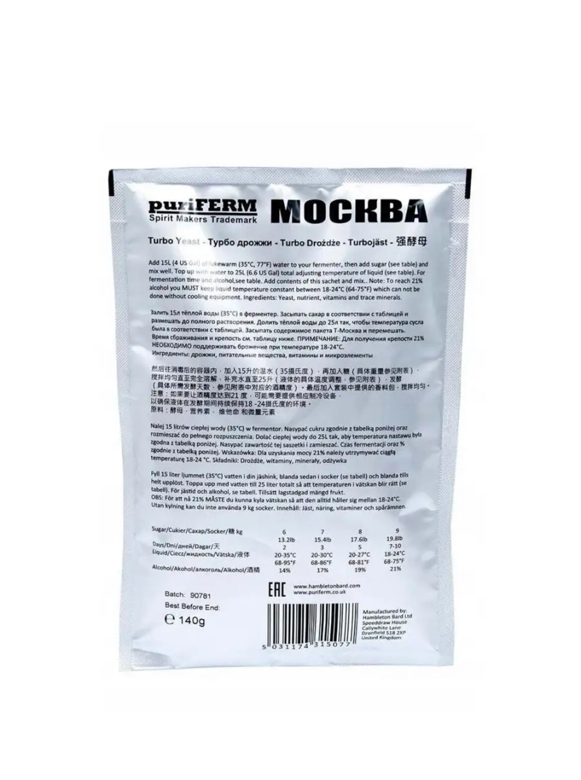 Турбо дрожжи PuriFERM Москва 2х140 гр интересное: