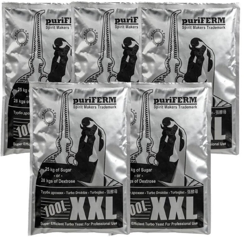 Спиртовые турбо дрожжи Puriferm XXL на 100 литров (5 пачек)/ дрожжи для самогона, браги/ дрожжи turbo 100l/ 350 гр