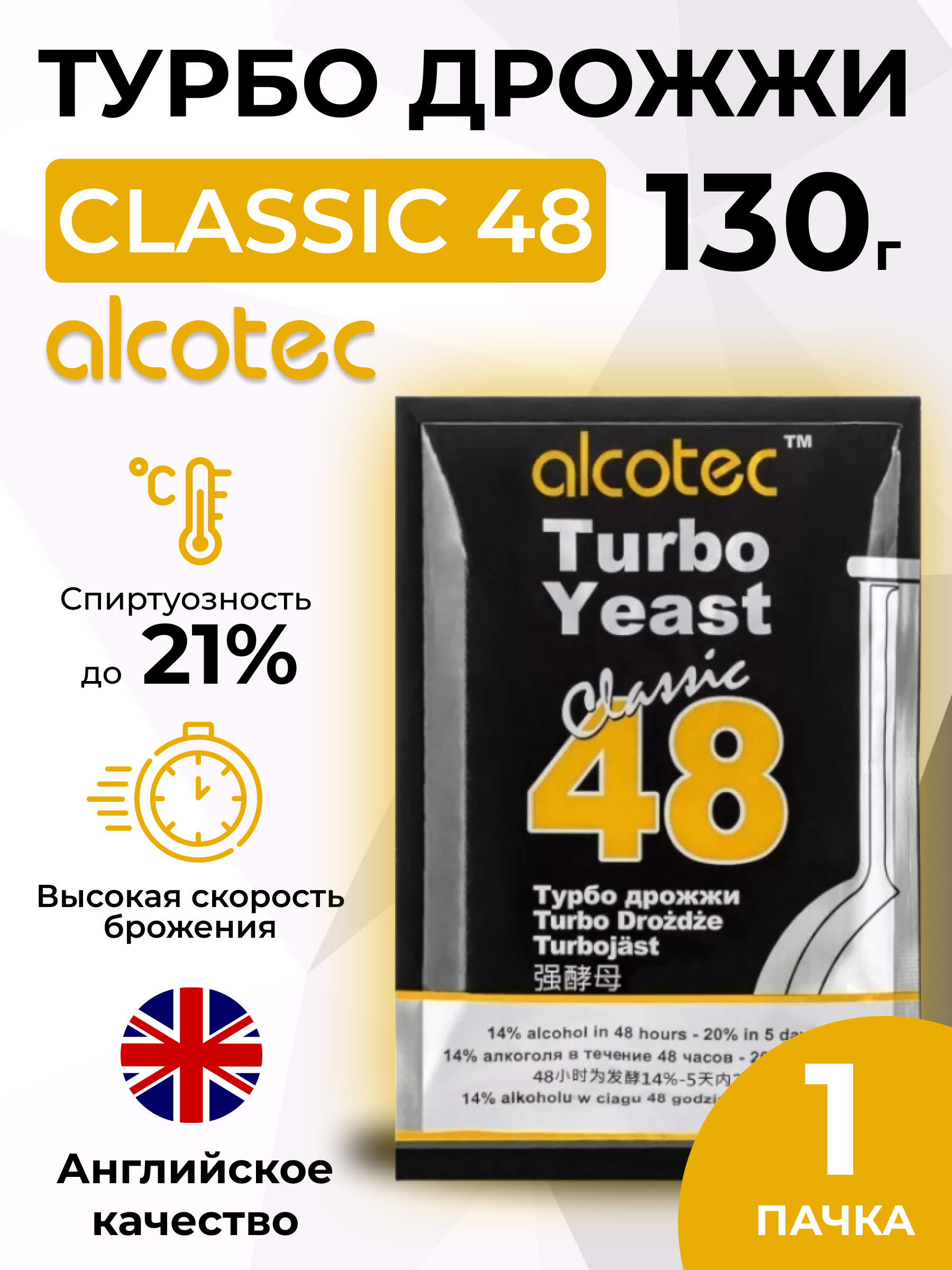 Турбо дрожжи Alcotec 48 Classic, 130 гр (Алкотек 48 спиртовые, 1 штука в комплекте)