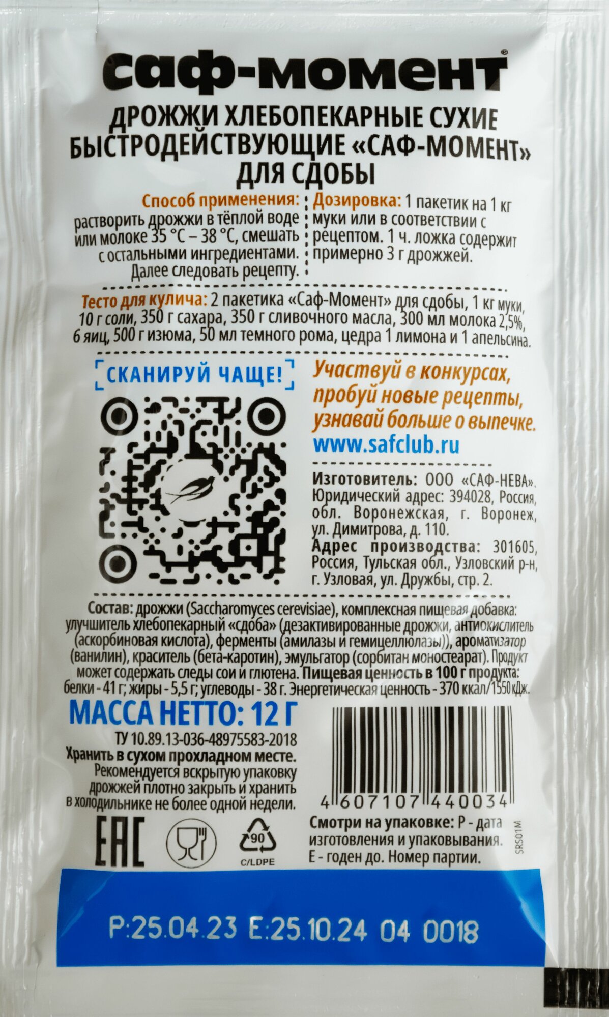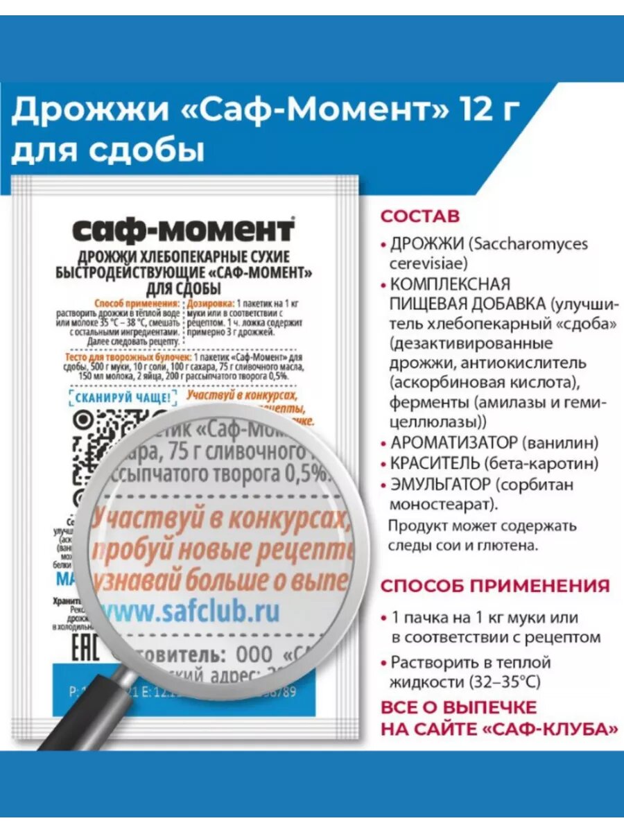 Дрожжи Саф - Момент быстродействующие для сдобы 10шт по 12г интересное:
