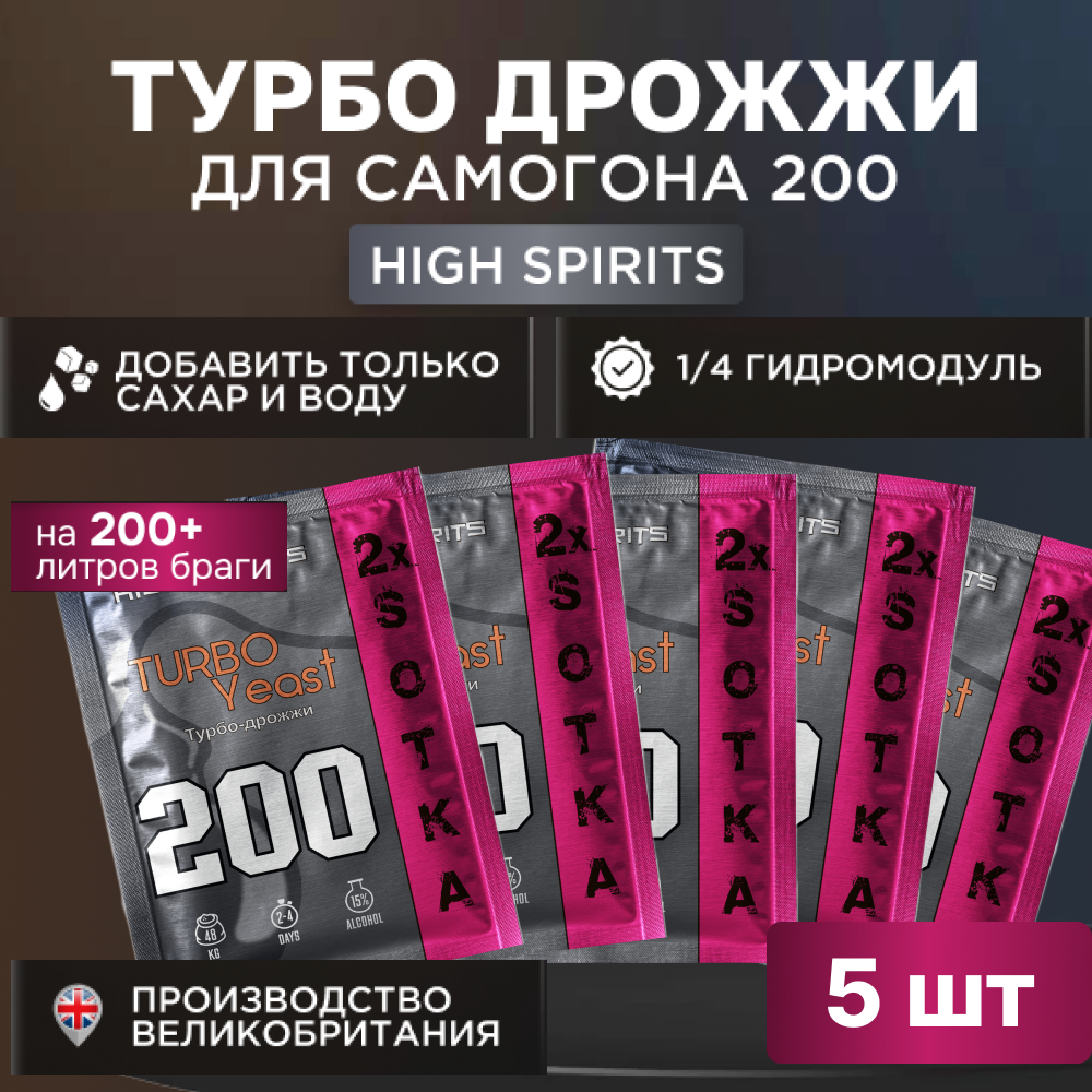 Турбо дрожжи High Spirits на 200л, 2шт