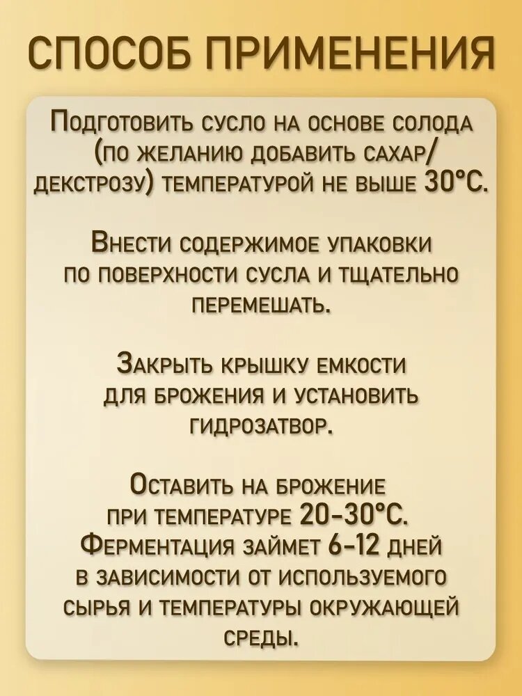 | Состав | дрожжи, питательные соли, микроэлементы |