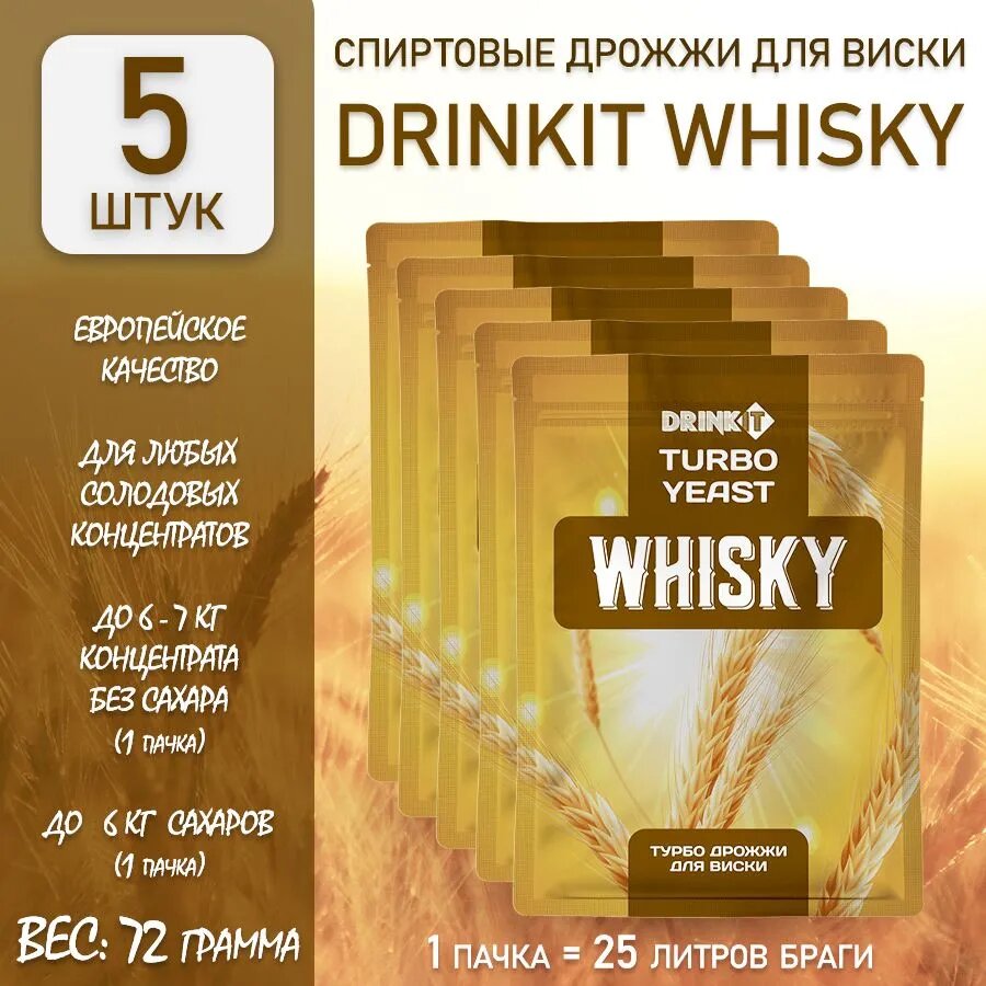Спиртовые Турбо Дрожжи для приготовления Виски DRINKIT Turbo Whisky 72г. 5 штук интересное: