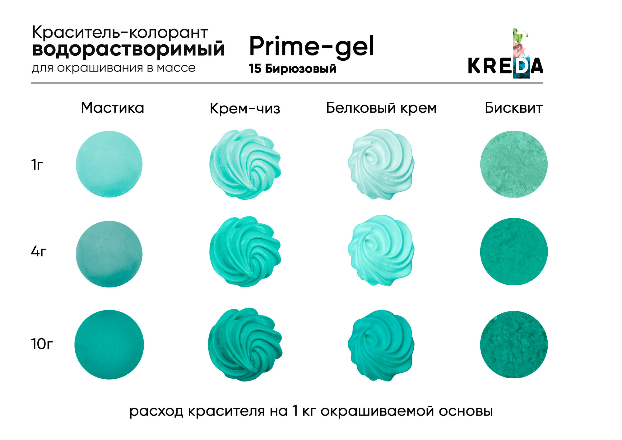 Купить Пищевой краситель Kreda Prime-gel, бирюзовый, 10 мл, гелевый, водорастворимый