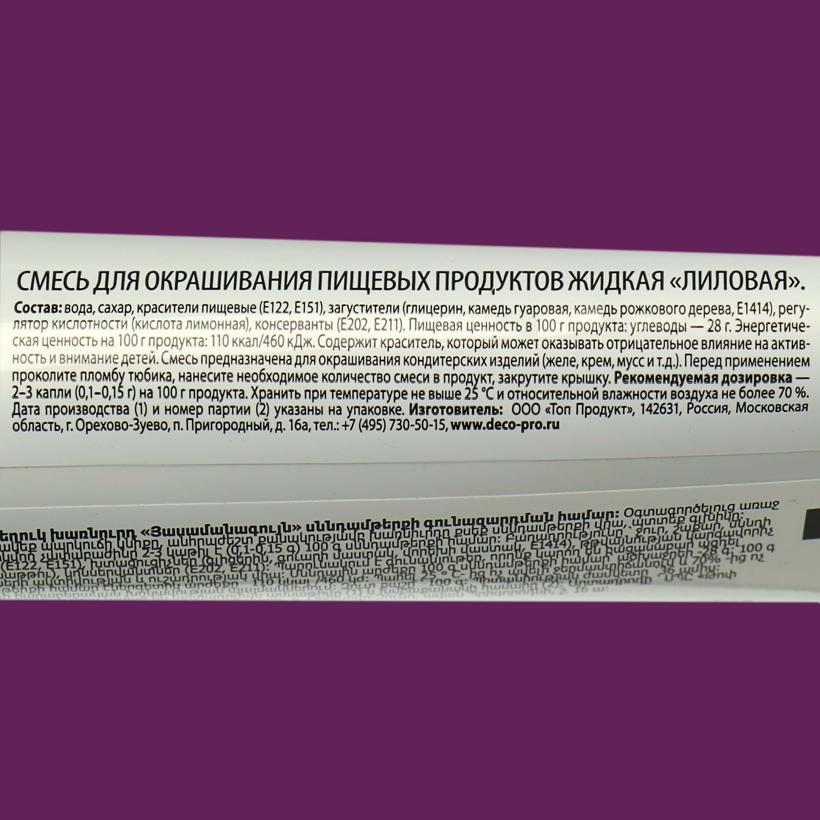СохранитьПищевой краситель Top Decor гелевый «Лиловый», 100 г интересное: