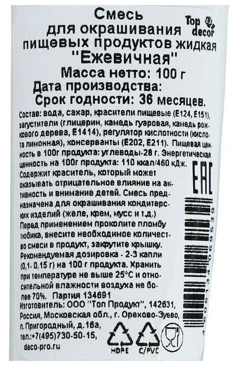 Ниже Вы можете прочитать отзывы на Краситель пищевой, гелевый жидкий - Ежевичный 100г, ознакомится с подробными характеристиками, посмотреть интересные обзоры и фотографии на Краситель пищевой, гелевый жидкий - Ежевичный 100г.