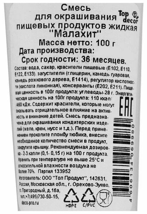СохранитьПищевой краситель Top Decor жидкий «Малахит», 100 г интересное: