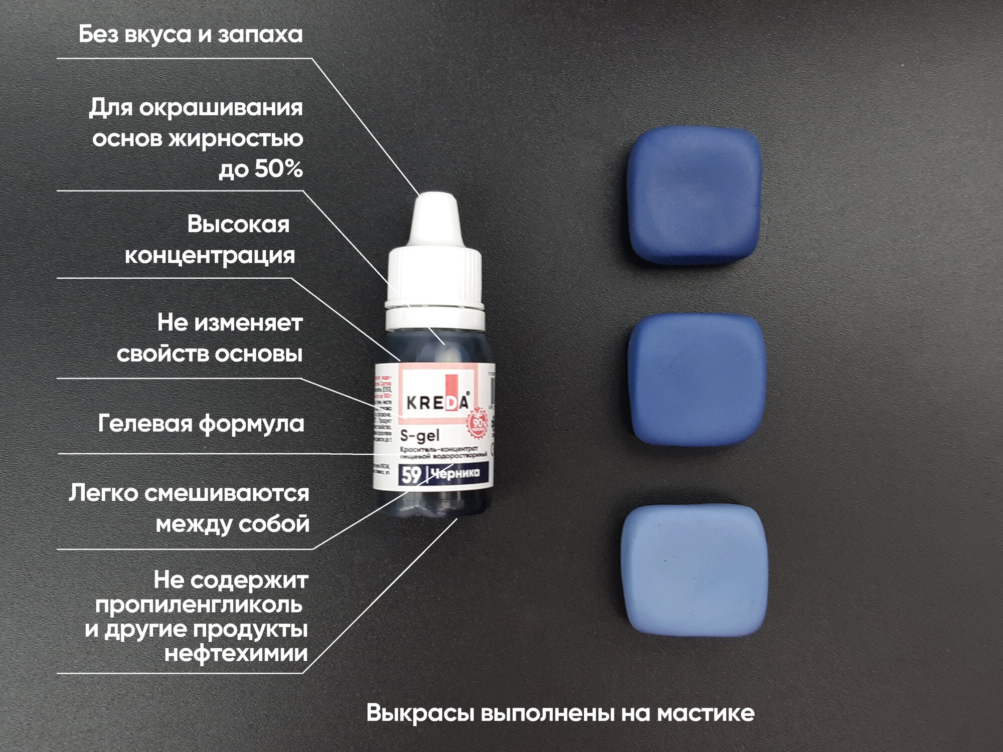 Ниже Вы можете прочитать отзывы на Пищевой краситель Kreda S-gel, черника, 10 мл, гелевый, водорастворимый, ознакомится с подробными характеристиками, посмотреть интересные обзоры и фотографии на Пищевой краситель Kreda S-gel, черника, 10 мл, гелевый, водорастворимый.