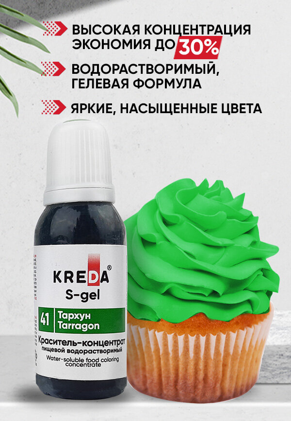 Купить Пищевой краситель Kreda S-gel, тархун, 20мл, гелевый, водорастворимый