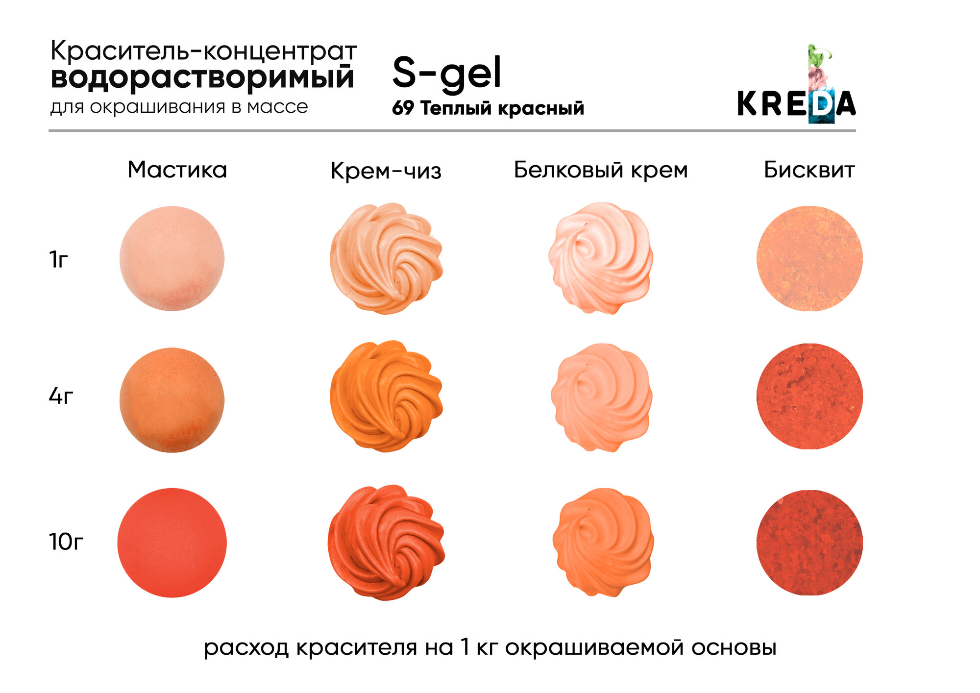 Пищевой краситель Kreda S-gel, арбуз, 10 мл, гелевый, водорастворимый