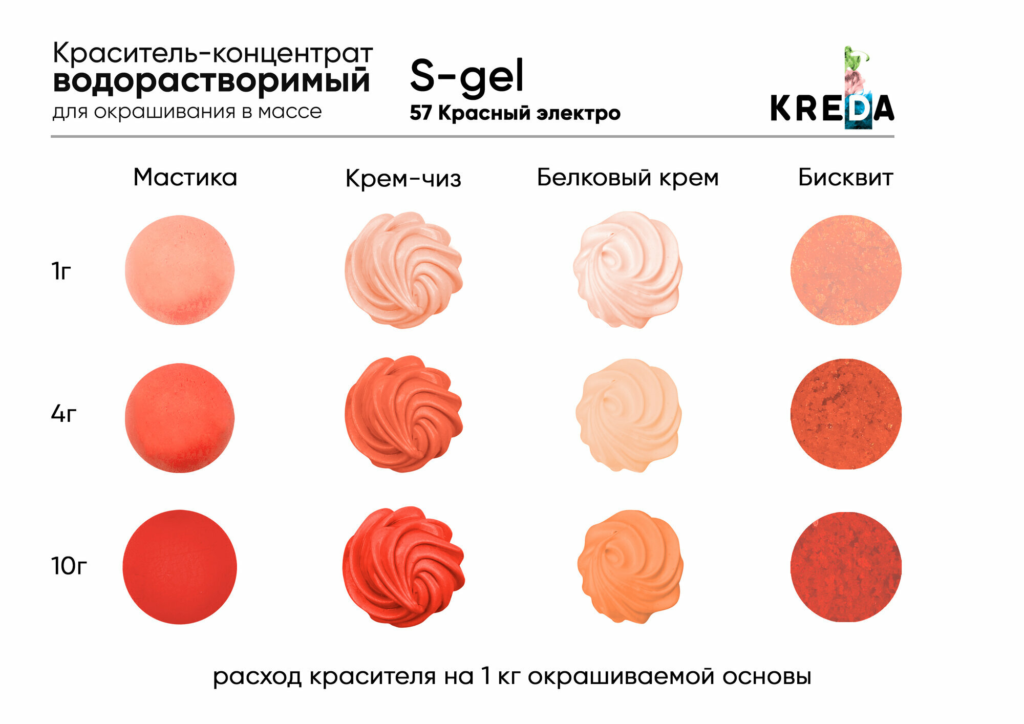 Краситель гелевый водорастворимый "Kreda" S-gel 57 Красный электро, (10 г)