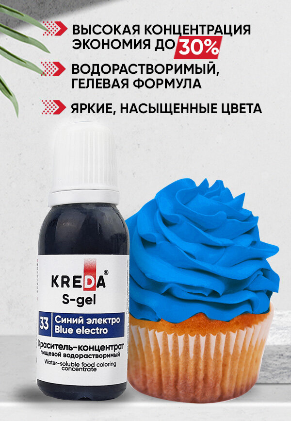СохранитьПищевой краситель Kreda S-gel, синий электро, 10 мл, гелевый, водорастворимый интересное: