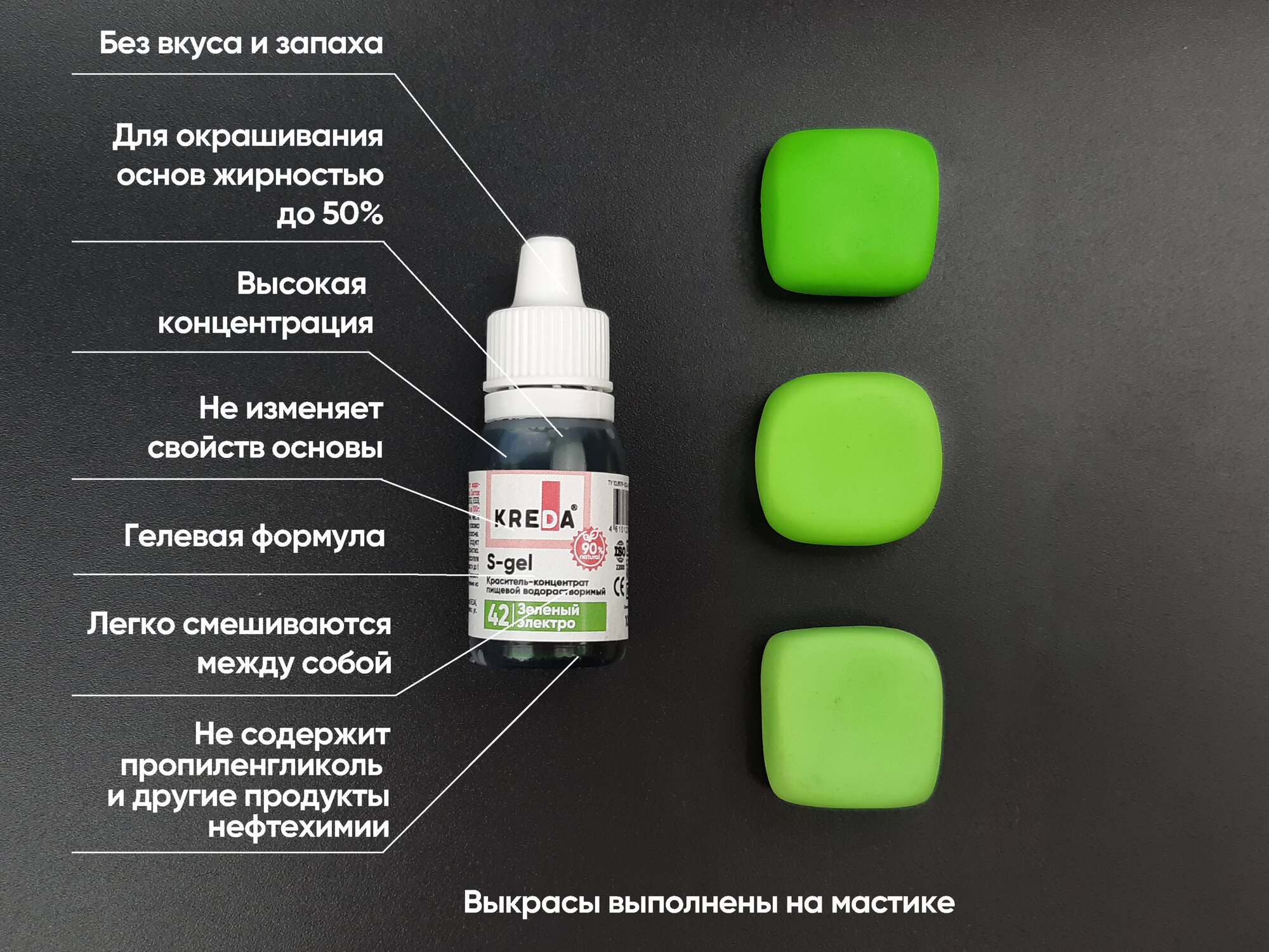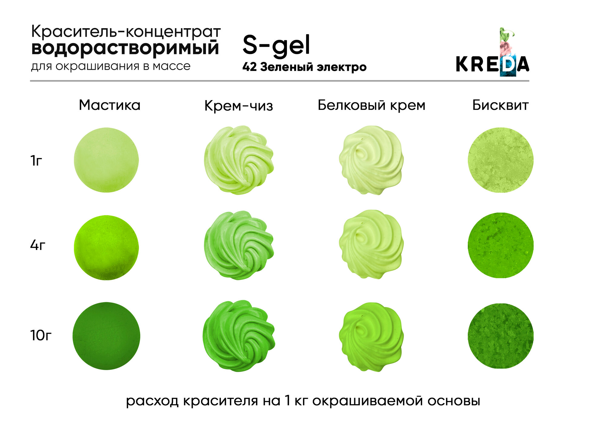 Пищевой краситель Kreda S-gel, васаби, 20мл, гелевый, водорастворимый
